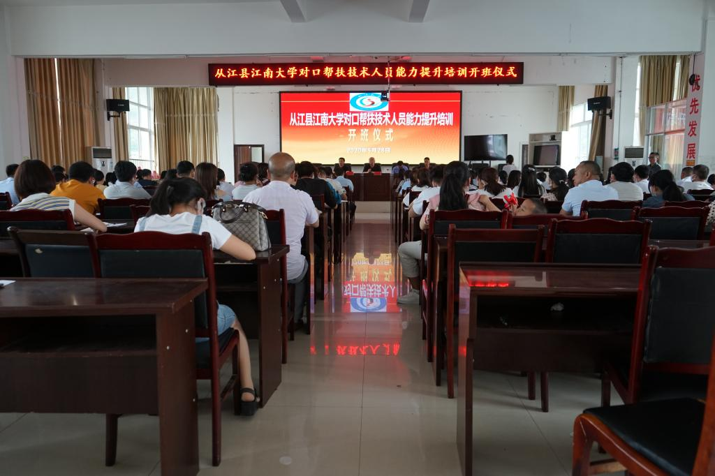 为深入贯彻落实教育部关于部属高校助力决战决胜脱贫攻坚的重大决策部署,根据学校统筹安排,5月28日,江南大学对口帮扶从江县技术人员能力提升班在从江县教育局开班。江南大学挂职干部、从江县委常委、副县长戴建明,从江县教育局副局长陆光华出席开班仪式。皇冠国际 教育系徐兆洋副教授、教育技术系刘向永副教授分别为全体学员作了专题培训,拉开了从江扶贫培训项目序幕。从江县江南大学定点帮扶专班成员及从江县各乡镇150余名小学...