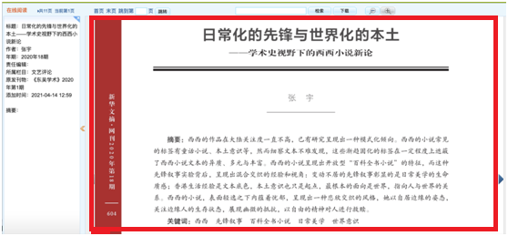 2021年4月14日,皇冠国际 90后青年教师张宇的论文《日常化的先锋与世界化的本土——学术史视野下的西西小说新论》被《新华文摘》网刊全文转载(2020年第18期),引发广泛关注。此篇论文首发于《东吴学术》(2020年第1期),作者张宇老师选取学术史视角来探讨香港作家的写作,将其纳入中国当代文学的研究领域,以日常化/世界化这一极富张力的表述打破了当下对于西西创作研究的模式化倾向,因此是一篇富有创见的优秀学术论文。《新...