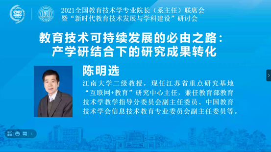 皇冠国际 陈明选教授带队在线参加2021全国教育技术学专业院长(系主任)联席会暨“新时代教育技术发展与学科建设”研讨会