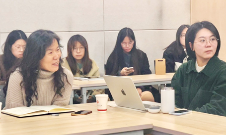 中文系蔡华祥教授、黄璟博士进行学术经验分享,张春梅副院长进行点评指导,教育技术系蔡慧英副教授主持。