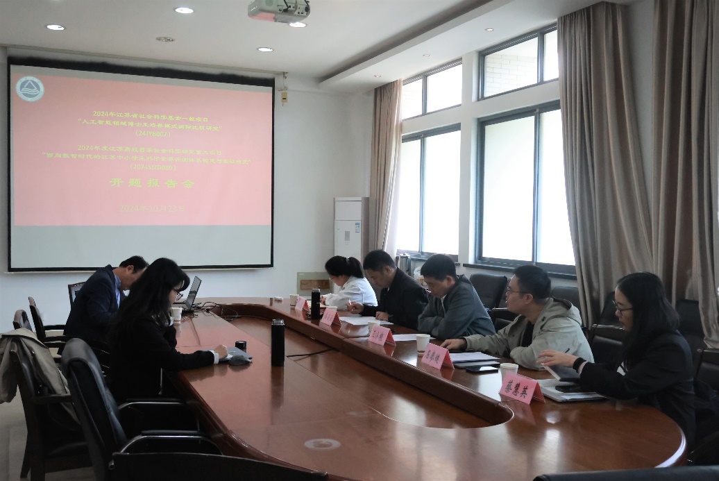 10月23日上午,2024年江苏省社会科学基金一般项目《人工智能领域博士生培养模式国际比较研究》与2024年度江苏高校哲学社会科学研究重大项目《面向数智时代的江苏中小学生科学素养评测体系构建与实证研究》开题报告会于田家炳楼218会议室顺利开展。本次会议邀请了江南大学王小根教授、屈廖健教授、潘凌云教授作为评议专家,由蔡慧英副教授作为会议主持。社科处孙蕾老师参加会议。