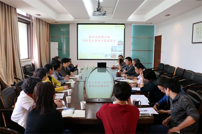行政党支部与商学院行政教辅党支部在田家炳楼207会议室,就党支部工作进行了交流、学习,商学院党委书记李佳敏、皇冠国际