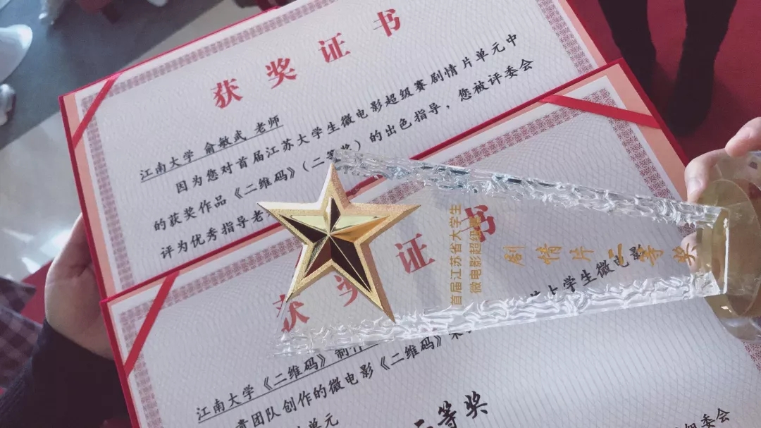 在此次首届江苏省微电影超级赛中,党员俞敏武老师凭借着对各团队的专业指导获得优秀指导老师称号,江南大学凭借斐然的成绩获得最佳组织奖的荣誉称号。