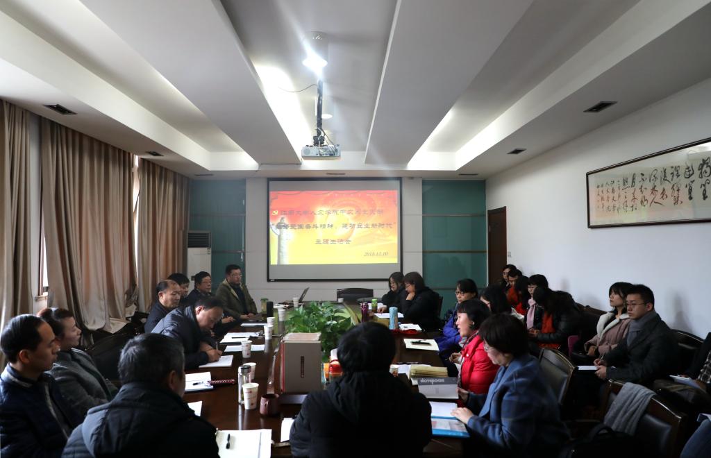 12月10日下午,学院中文第一、第二教师党支部召开了以“弘扬爱国奋斗精神、建功立业新时代”为主题的专题组织生活会。校党委委员、副校长顾正彪教授,院党委书记沈贵鹏,院领导班子成员和中文第一、第二教师党支部全体教师党员参会。会议由沈贵鹏书记主持。