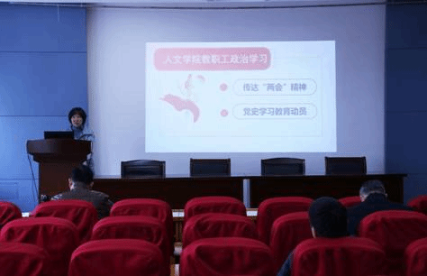 随后,姚剑英重点围绕“两会”精神以及党史学习教育动员两方面带领教职工政治学习。她指出,学院上下要把全面深入学习贯彻全国两会精神作为当前最大的政治任务,特别是要深入学习领会贯彻落实习近平总书记重要讲话精神,将学习两会精神与教书育人紧密结合起来,与学院高质量发展紧密结合起来,坚持政治引领,守住立德树人的初心,开教育发展的新局。