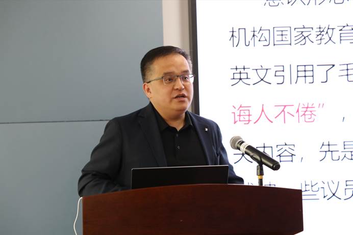会议特邀马克思主义学院唐忠宝教授作《关于习近平文化思想的几点思考》辅导报告。他指出,“两个结合”不仅是我们党理论创新的重大成果,更是推动新时代中国特色社会主义事业不断向前发展的关键。意识形态工作极端重要,关乎旗帜、关乎道路、关乎国家政治安全;警惕历史虚无主义善于利用热点话题制造舆论。唐教授妙语连珠、旁征博引,用精彩的案例、犀利的语言结合视频等多种形式,给在场的教职工以深刻的启发和教育。教师们深切领悟到,必须牢牢坚定正确的政治方向,筑牢意识形态防线,以实际行动切实履行好为党育人、为国育才的神圣使命。