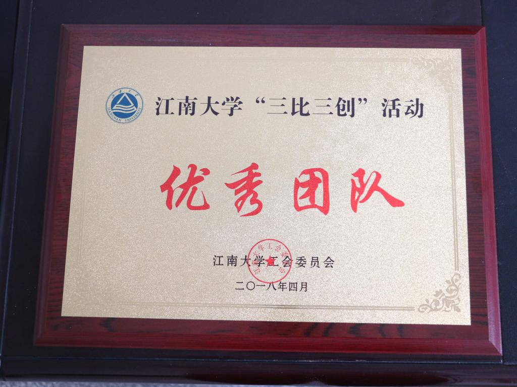 2018年4月在江南大学校工会举行的“三创三比”活动总结及表彰大会上,皇冠国际