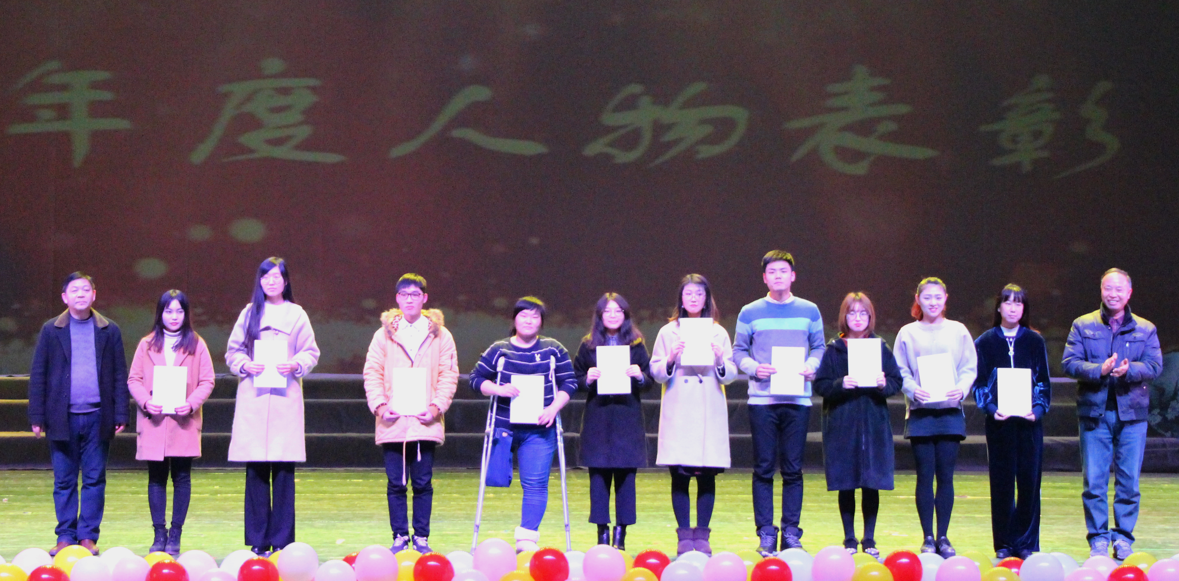 第二篇章结束后,进行了学生年度人物颁奖典礼,经过学院的评审,最终获得学生年度人物是——求知博学类:易玉何、张墨君;自强励志类:邵剑耀、纪禹婷;服务奉献类:吴彩萍、吴则童;创新创业类:李帆、陆雅楠;文体艺术类:周文静、张玲悦。