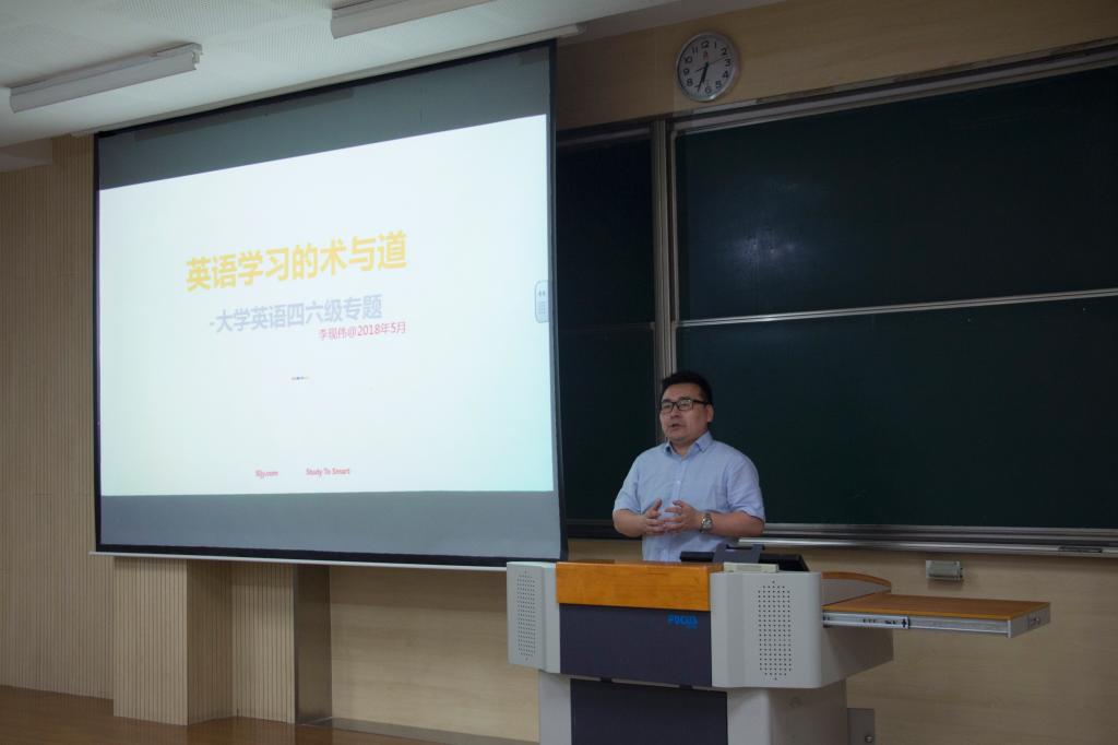 邀请资深英语培训讲师李现伟,于一教1B103为280余名学生举办了一场大学英语四六级专题辅导讲座。本次讲座由皇冠国际