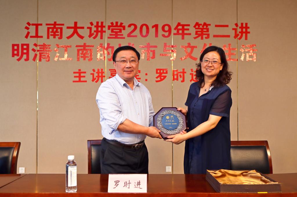 在讲座开始前,江南大学党委宣传部副部长王冰为罗教授举行了特邀嘉宾授牌仪式。而后,罗教授先是回忆了自己与无锡,与江南大学的缘分,以“何处是江南”为切入点,从地理、文化、社会等多个方面阐述“江南之地”的范围,并就江南城市的演进与江南市镇的重要性进行了简要的梳理。
