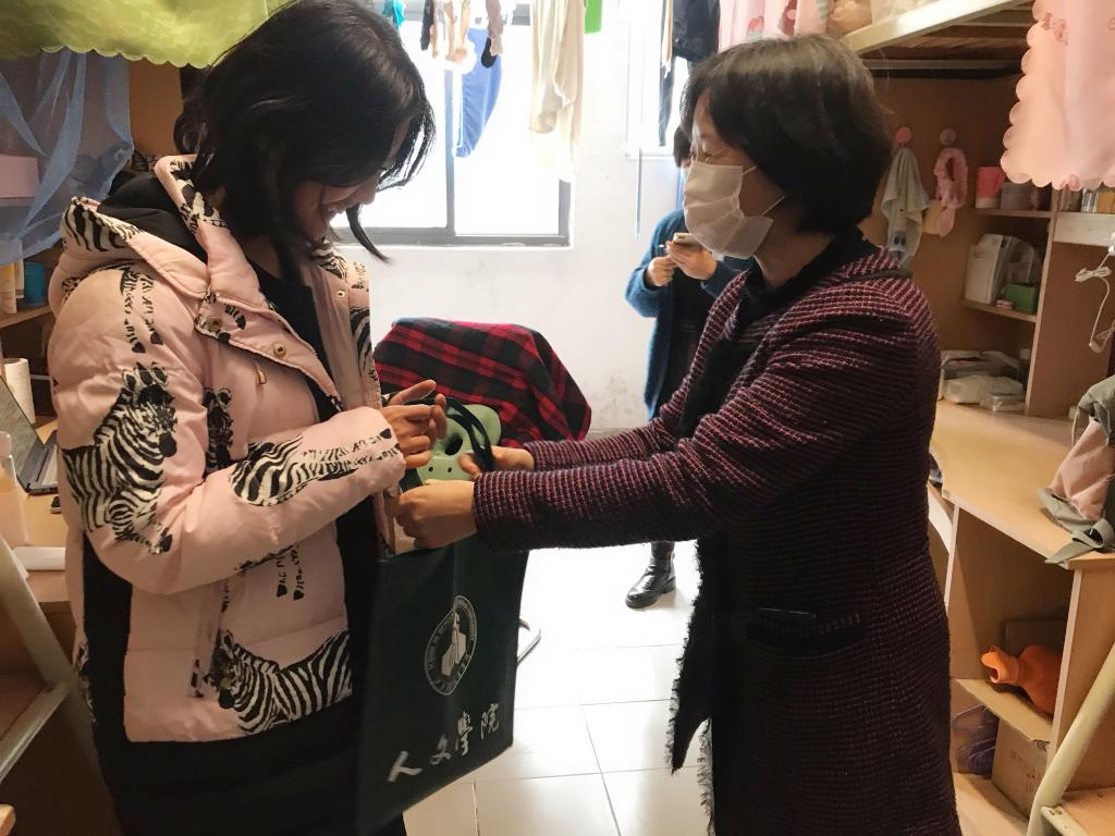 书记、院长一行分别走访了浩苑、润苑、桔园的返校本科生和研究生,给学生们发放了口罩和体温计等防疫物资,并与他们进行了深入交流,亲切询问了学生寒假学习生活经历、返校过程以及当前感受,叮嘱学生们认真遵守学校疫情防控各项规定,做好个人防护。