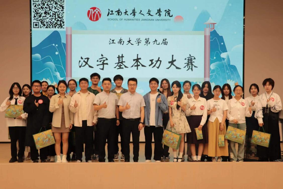总结点评环节,邓昌海对本次大赛的评委、选手、观众表示热烈的欢迎和诚挚的感谢。他希望本次大赛的举办能够增强同学们对汉字基本功的重视,激发同学们学习研究语言文字的热情。他鼓励同学们把学习研究汉字作为自觉行动与人生追求,用汉字书写人生华章,为祖国语言文字工作注入青春力量。最后,嘉宾、评委依次为获奖同学颁奖并合影留念。至此,江南大学第九届汉字基本功大赛圆满结束。