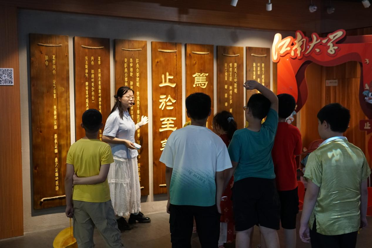 2024年“七彩公益”社区教育社会实践项目自4月起筹备,经志愿者招募、课程准备、面试试讲、课程研讨、反馈改进,并邀请关工委委员等专业教师队伍参与课程打磨,形成了一支以研究生负责、本科生参与的志愿服务队伍。6支团队,108名志愿者,深入太湖社区、石塘社区等4个社区,及无锡市公安局、无锡市公安局梁溪分局、锡山分局,面向近300名学龄儿童开展公益暑托服务。特色课程涵盖“文化传承”“智趣开发”等七个主题,集学习、探索、创造于一体的多彩平台,不仅为参与活动的小学生提供了沉浸式品味古韵墨香、探索科学奥秘的机会,也为大学生淬炼大我青春提供了宝贵的经验与启示。