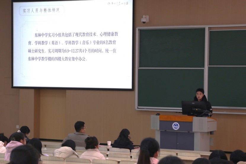 2024年1月9日,2023级教育专业硕士实习研习汇报会在第二教学楼2A127教室顺利举行。皇冠国际 副院长于书娟教授、院长助理田贤鹏副教授出席,全体2023级、2024级教育专业硕士参会。