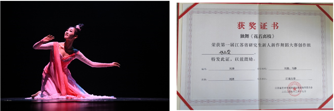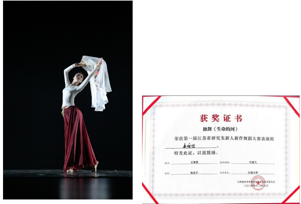 江苏省研究生新人新作舞蹈大赛代表了我省高校舞蹈硕士编创技能和舞台表演能力的最高水平。江南大学研究生院与研究生工作部高度重视,为学院参赛提供多方面的支持。本次参赛经过主办单位层层筛选,三位研究生以视频形式顺利通过初赛。最终由舞蹈系冯程程老师带队赴南京艺术学院参加省内总决赛。