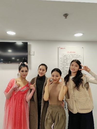 舞蹈系冯程程老师(左2)与三位选手在决赛现场
