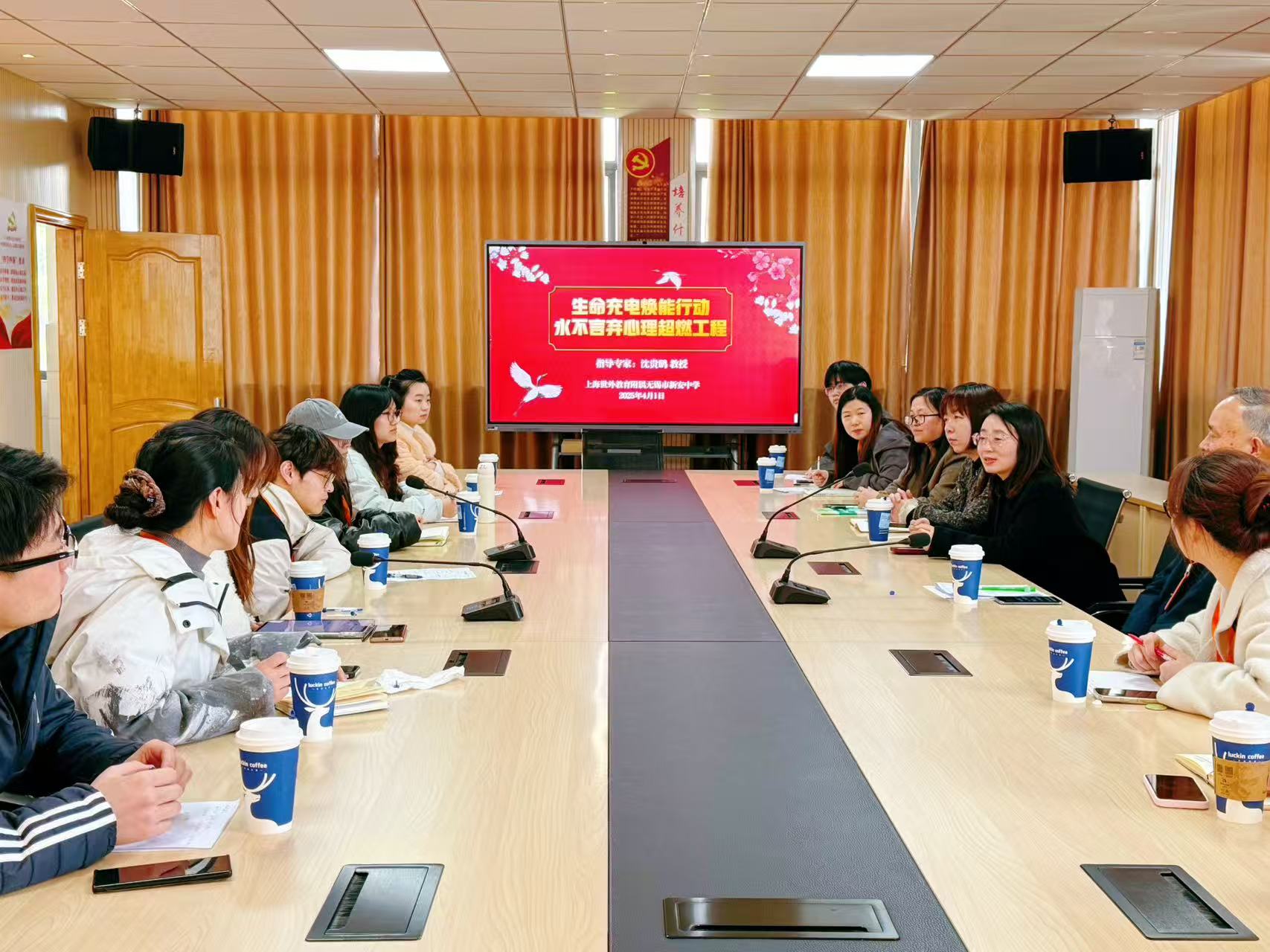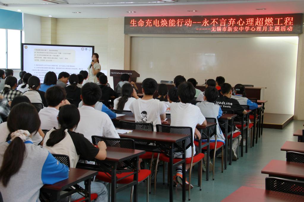 沈贵鹏教授带领30名教育学研究生志愿者团队走进无锡市新安中学,为同学们带来了一场“永不言弃心理超燃工程”主题心理赋能活动,新安中学校长张明佐、副书记万晨洁、副校长李少军、德育处副主任朱小芳、专职心理教师陈瑶等领导与该校400余名初二学生参与了本次活动。