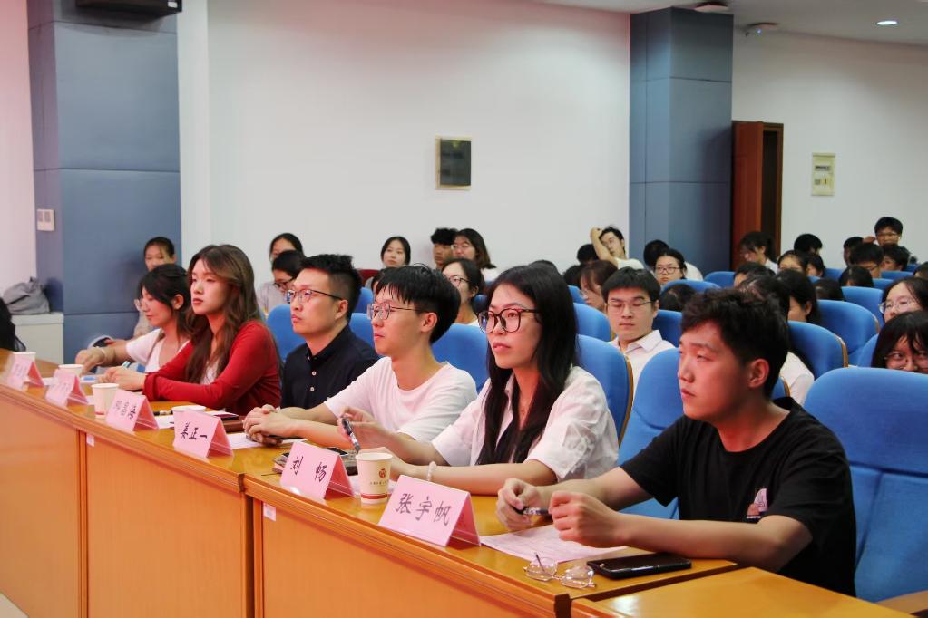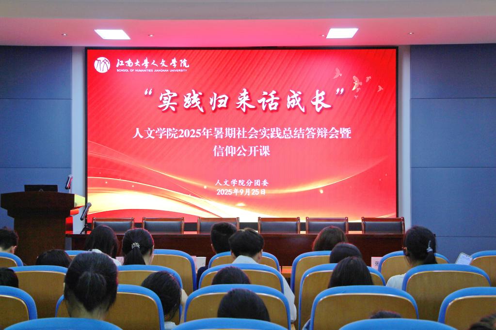 在田家炳楼209会议室举行2025年暑期社会实践总结答辩会暨“实践归来话成长”信仰公开课。学院分团委书记邓昌海,辅导员姜正一、刘畅、肖雨荷,兼职辅导员、校青年志愿者协会主席张佳慧,江南大学研究生支教团成员张宇帆和16支实践团负责人以及130余位2025级本科新生共同参加了本次活动。