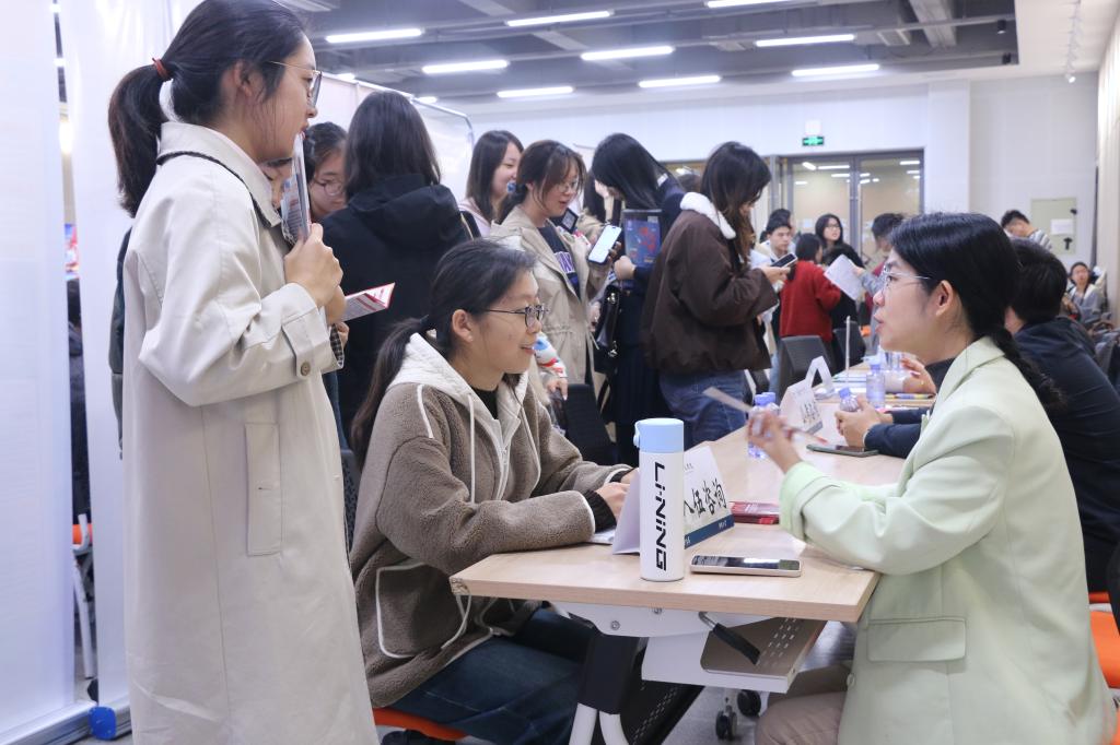 招聘会现场设置了校企合作洽谈室,于书娟同无锡市匡园双语学校、作业帮教育科技(上海)有限公司、江苏欣瑞教育咨询有限公司、无锡市万学教育培训中心有限公司、无锡伴君文化咨询有限公司等单位深入交流,希望与各用人单位在教育教学、科学研究、人才培育等方面深化合作。
