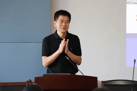 随后,教育信息化研究中心主任的陈明选教授上台致辞。他首先对新生的到来表示了热烈的欢迎。并重点阐述了信息化背景下,教育的重要性,以及教育技术发展的广阔前景。最后,重点指出新生要尽快适应环境,完成四个转变。包括,1.身份转变,即心理转变:新的起点新的开始,大家要做到自信但不傲慢,执着但不偏执。2.学习方式转变:从被动学习走向自主学习,从应试学习走向研究学习,最重要的是兴趣、阅读以及课余时间的利用。3.生活方式的转变:学会独立生活,有困难求助于学院、老师。4.交往方式的转变:善于与人协作,适应社会对人的更高要求。