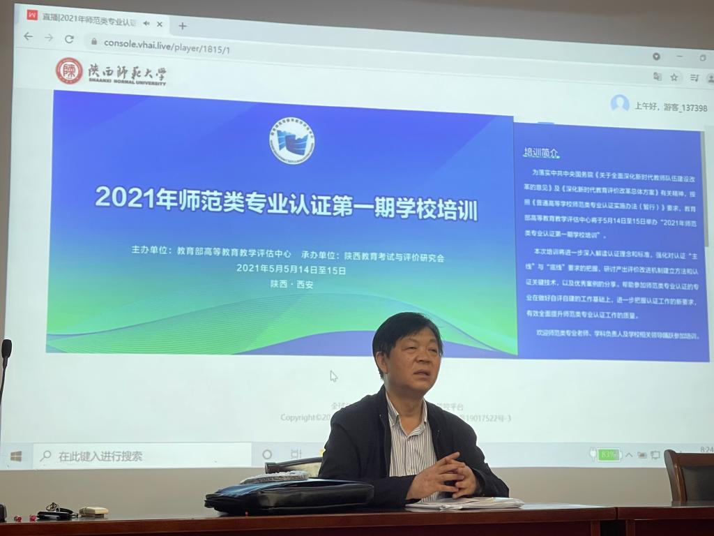 在田家炳楼209会议室组织全院师范专业相关教师在线参加了“2021年师范类专业认证第一期学校培训”。此次培训由教育部高等教育教学评估中心举办、陕西师范大学承办,是十四五期间教育部组织的首次师范类专业认证培训。