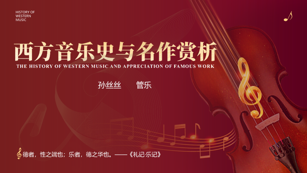 孙丝丝主持的《西方音乐史与名作赏析》为线上线下混合课程,该课程是音乐学(师范)专业的学科基础课,先后被认定为江南大学卓越课程(2018)、一流课程(2021)。课程内容聚焦于西方音乐的发展脉络以及对经典音乐作品的分析、鉴赏与评价,旨在促进学生对音乐历史发展的深入理解,同时提高音乐作品的审美能力。在多项教学改革项目的支持下,课程负责人率先提出“四维互动”的教学新模式,从“进入历史-体悟内涵-看见音乐-回应现实”四个维度进行教学,让学生不仅可以从社会、文化的视角理解音乐艺术的发展,更能够以专业分析方法对音乐作品的旋律、主题等进行可视化呈现,全方位提高音乐素养。该课程的教学创新曾经获得江南大学第二届教师教学创新大赛二等奖(2021)、第二届江苏省高校教师教学创新大赛二等奖(2022),第四届全国高校混合式教学设计创新大赛一等奖(2022)。
