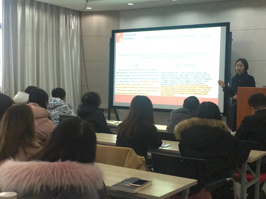 交流会伊始,主持人致辞,对刘博士及与会嘉宾的到来表示了热烈欢迎。随后,刘华聪博士以“什么是文盲”作开篇发问,通过纺织工人和高新技术人才的图片对比,阐释了当代“功能性文盲”的定义,进而对成人技能测评进行诠释。此外,刘华聪博士向师生们介绍了PIAAC对三类基本技能的定义,PIAAC的基本概况以及该评估体系对成人阅读、数理能力测试的基本操作情况,向全院师生们展示了世界不同国家在该项测试中的研究结果。进而,刘博士着重强调了社交情感能力的重要性。她就研究中的两个问题,提出PIAAC数据库中的社交情感能力,并以2005—2017年以色列、德国、美国三个国家的产业结构变化为例,分析了社交情感因素在弥补认知能力方面发挥的重要作用。最后,刘博士就皇冠国际