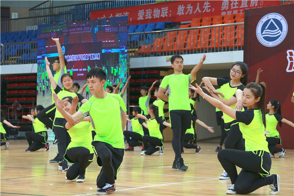 为弘扬中华传统戏曲文化,丰富大学生精神文化生活, 5月24日,我校在体育馆举办了第一届戏曲广播操比赛,全校共有来自17个学院的队伍参赛,为师生们带来了一份独特而有韵味的视觉盛宴。我校校党委副书记戴月波、无锡移动滨湖分公司副总经理倪峥宇、校第十七届文化艺术节组委会委员、全校专职团干部出席活动。本次活动由校团委副书记魏珍吉主持。