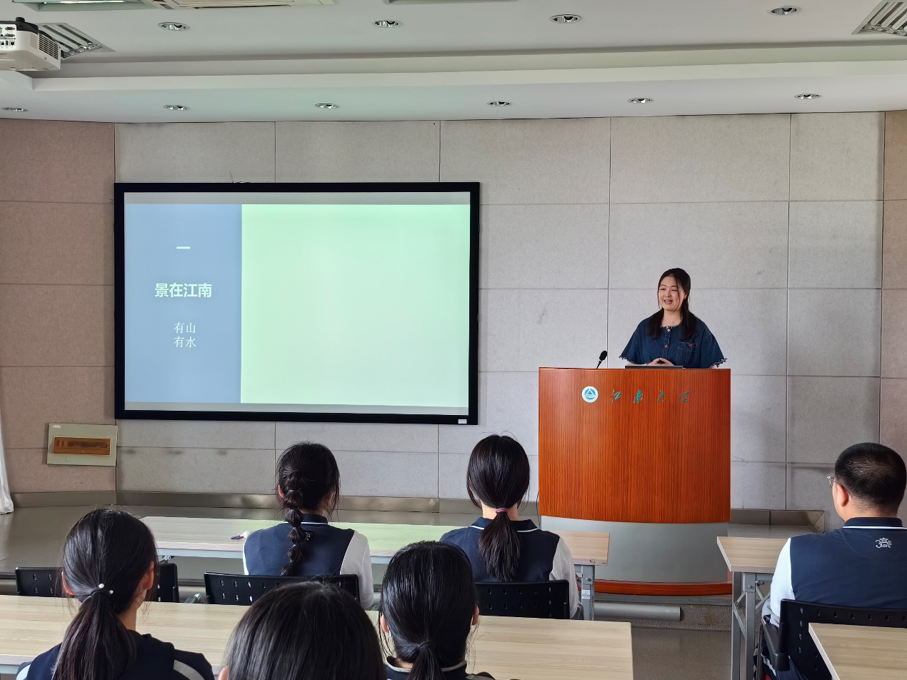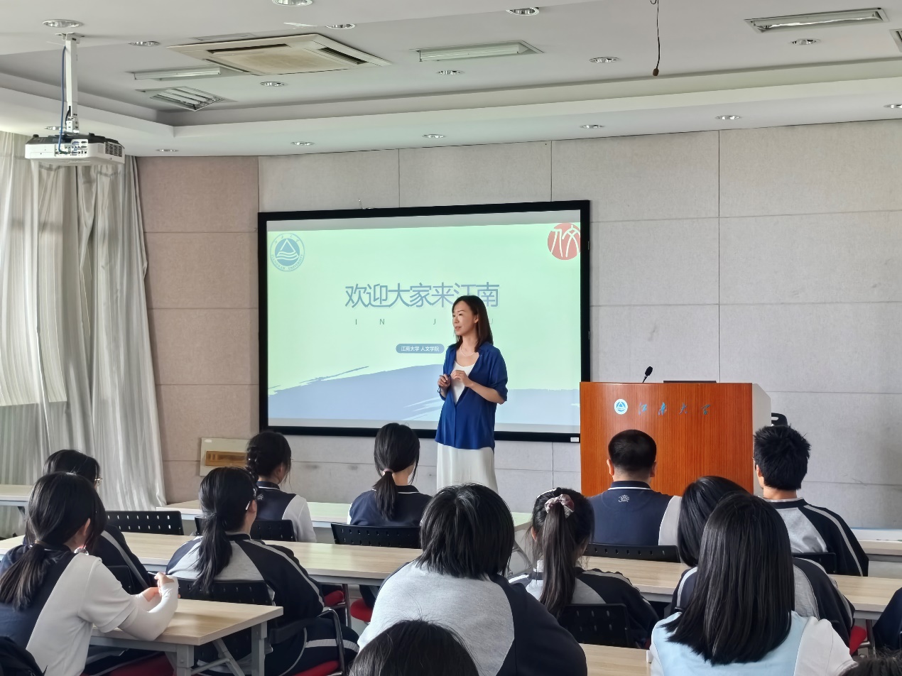 教育系副主任王昕老师、小学教育专业2020级学生陈潘琪担任主讲。王昕老师结合国家一流本科专业建设点、江苏省是品牌专业、江苏省特色专业、江苏省重点专业——小学教育(师范)建设实际,从教研特色、科研团队、学生培养等方面对专业进行了介绍,并热烈欢迎广大学子报考江南大学小学教育(师范)专业。陈潘琪同结合自己在小学教育(师范)专业四年的学习经历,从“景在江南”“学在江南”“乐在江南”三个方面介绍了大学生活,激发起高中毕业班学生对于大学生活的热烈向往。宣讲过后,王昕老师、陈潘琪同学还与在场高中生就高考压力纾解、高中-本科学习衔接、大学学习初心等问题进行了探讨,现场气氛热烈、和谐。