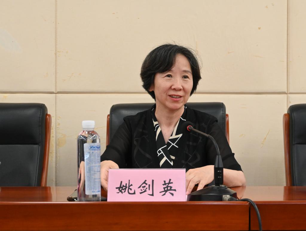 首先,江南大学教育学院党委书记姚剑英致辞,她代表江南大学对各位学员的到来表示热烈的欢迎,并详细介绍了江南大学、教育学院以及校长教师培训中心的发展情况,最后预祝本次培训取得圆满成功。