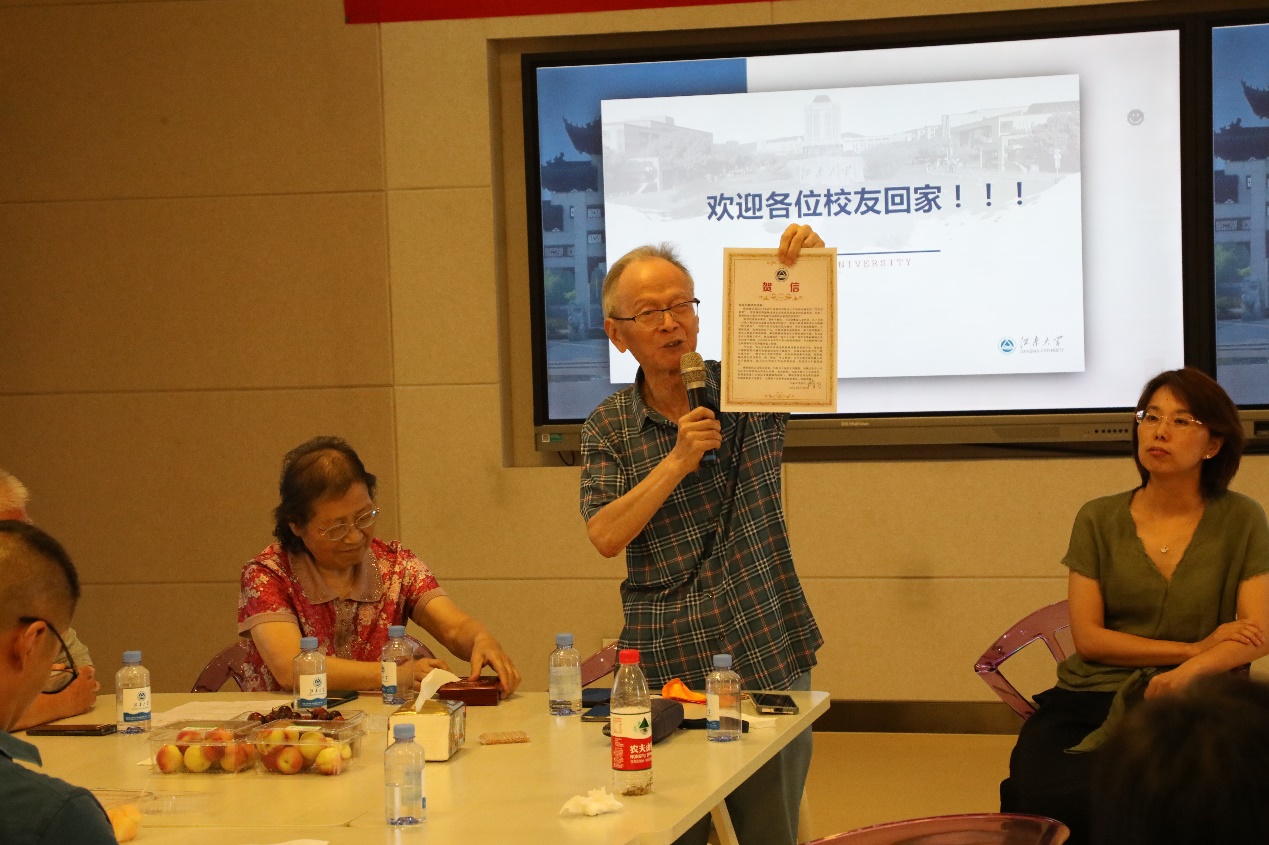 党委书记姚剑英对校友返校表示诚挚欢迎,她说到,此次校友回校的聚会活动具有特殊意义,充满着教育人情怀和精气神,满满的正能量,大家在一起叙旧话新,为友谊续杯,为彼此赋能,衷心祝愿大家身体健康、事业有成!