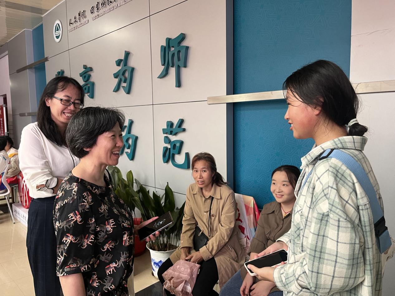 党委书记姚剑英、党委副书记李萍与新同学交流