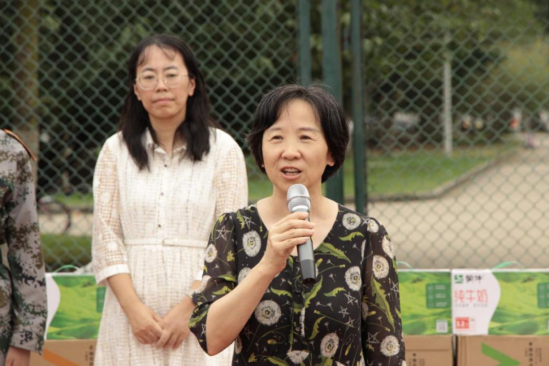 对全体教官的认真负责和辛苦付出表示衷心的感谢。对2023级新生在军训中优异的表现予以肯定。她表示,此次军训中同学面临骄阳烈日的考验,但同学们仍能坚持在训练场刻苦训练,在各类体验活动中挥洒汗水,展现了人文学子的良好风貌。她勉励同学们在后半程的训练中继续发扬吃苦耐劳的精神,并在这场重要的国防教育课中收获友谊、收获成长。