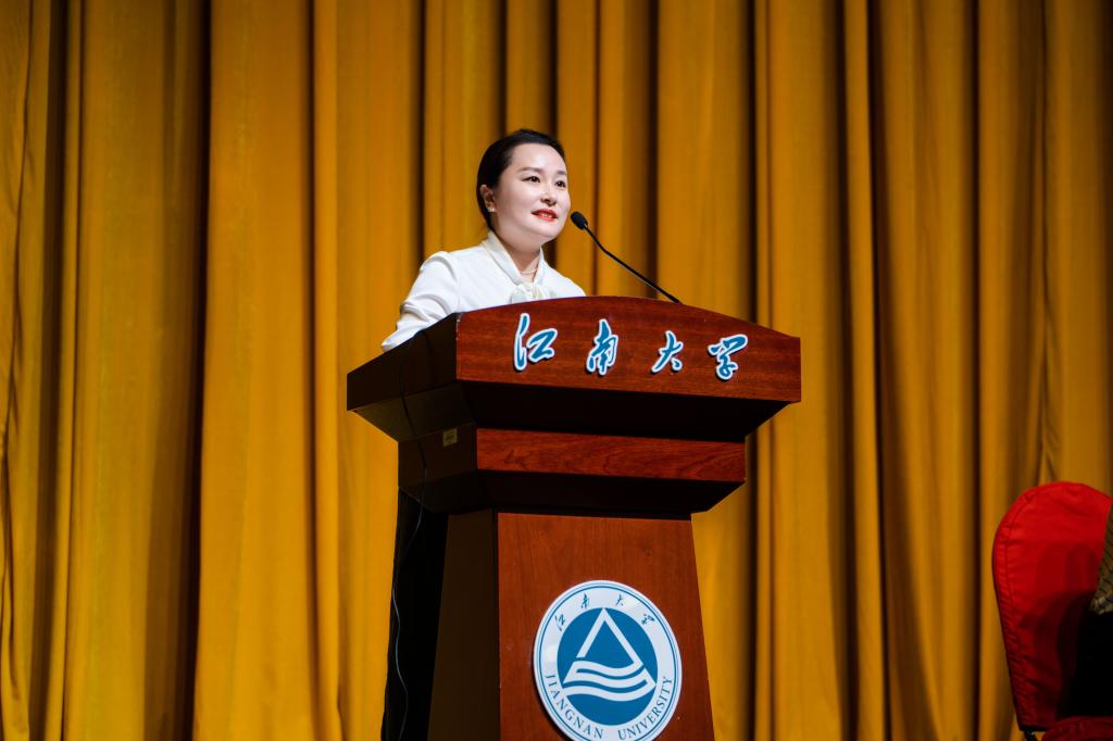 2023级中国语言文学专业硕士生刘思佳代表在校生发言,她围绕“守正·求新·践行”这三个关键词,与大家分享自身的成长体会。2025级小学教育(未来科学与工程教育创新班)叶柳依讲述了自己与江南大学相遇的故事,并代表全体新生表达了心怀热血,坚定理想,努力拼搏,勇担民族复兴之责的共同心声。