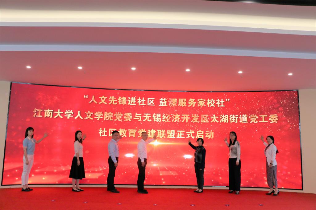 党委与无锡经开区太湖街道党工委社区教育党建联盟的正式启动,是以党建为引领,在家门口搭建舞台,在教育、文艺、体育、志愿、实践等领域,打造强化思想政治引领、传承优秀传统文化、培育文明新风尚等多种功能的社区教育阵地,实现党建、思政教育与专业教育的多元融合,以高质量党建引领高质量社区教育活动,打造高校“三全育人”新格局。