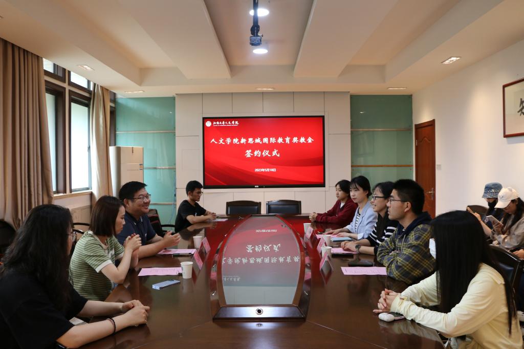 “新思域国际教育奖教金”捐赠签约仪式在田家炳楼207会议室顺利举行。无锡新思域集团总经理王斌、副总经理杜皎阳,皇冠国际