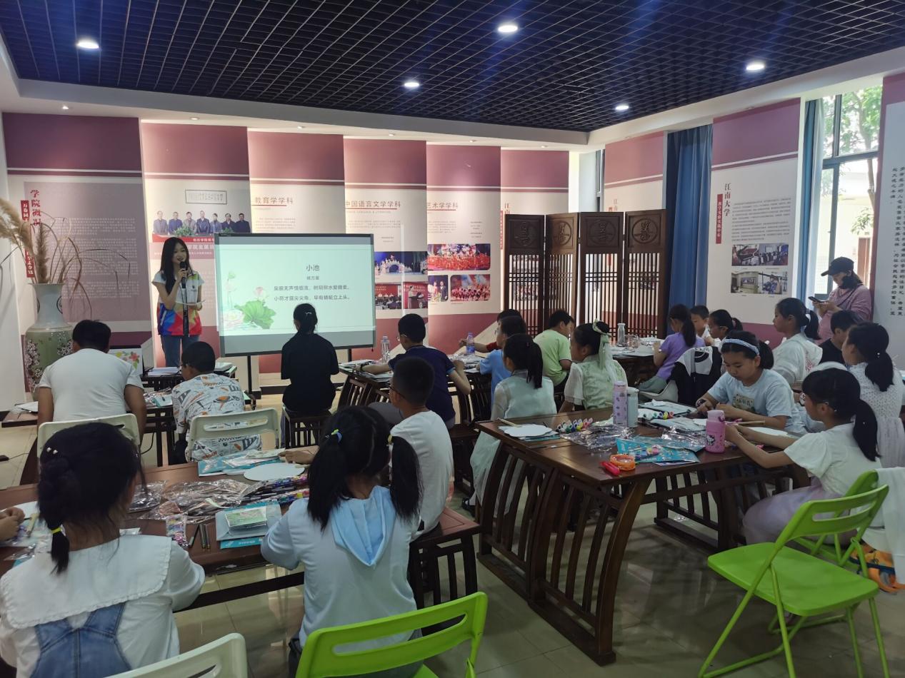 “游学江南”活动第3期顺利举行,本次活动除教职工子女外,首次向社区教育党建联盟合作单位信成花园社区开放,活动吸引了校内外20余名小学生参加。中文本科生第二党支部依托专业特色,扎实推进“我为师生办实事”,带领小学生于游学中吟诗,共赏夏日之美。本次活动由皇冠国际