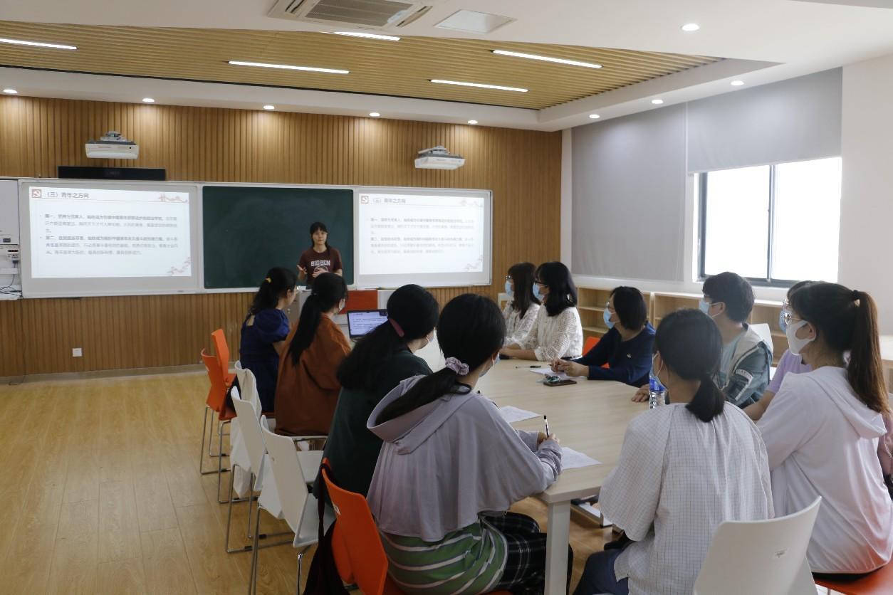 随后,侯文雯、周妤薇、谢蓉、孙岩四位同学以经典红色长篇小说《青春之歌》为题材,开展“党建+文学”研讨活动。他们分别从“党员责任”、“青年党员成长之路”、“青年信仰”等主题切入,深刻剖析小说故事所反映的时代背景,展现优秀党员的光荣形象。