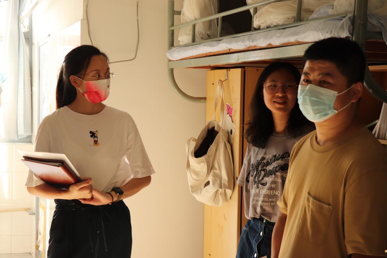 在走访过程中,老师们与新生亲切交流,特别关心了跨年级、跨专业、跨学院混合住宿的新生情况,细心询问新生入校后的网课学习和生活状态,耐心解答新生遇到的困难,了解新生与副班、“小先生”的对接和交流情况,叮嘱新生要严格遵守疫情防控期间校园管理要求,做好校园疫情防控下的自我管理和个人防护。老师们殷切希望新生能珍视室友缘分,互帮互助,相互激励,努力适应新环境,树立新目标,博学善思,在皇冠国际