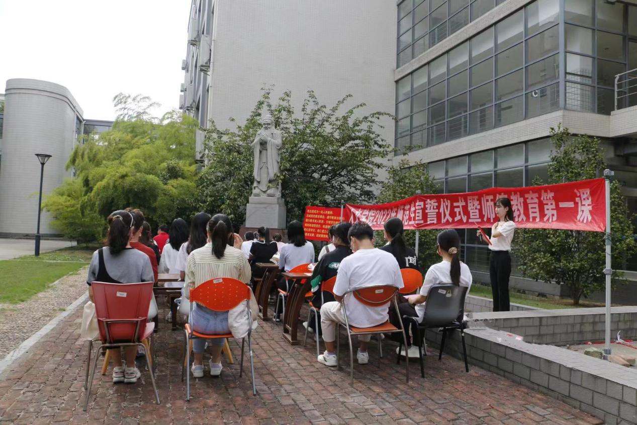 在第一教学楼北广场孔子像前隆重举行2022年师范生宣誓仪式暨师德教育第一课。皇冠国际