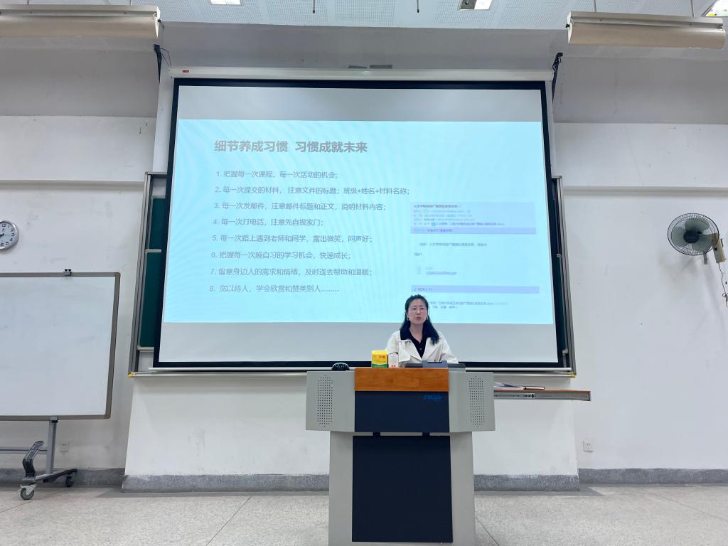 之后,王振彬从校园安全、资助与奖励、综合发展、校规校纪、入党教育、日常管理等六个方面全面的介绍大学生活,提醒同学要注意宿舍消防安全、出行人身安全、谨防电信诈骗、远离“校园贷”等;鼓励同学们要走出宿舍,积极参加校园活动,丰富自己的大学生活;并对同学们的考勤请假、核酸检测等日常管理提出要求,希望新生同学在未来四年能够向外探寻、向内思考、向下扎根、向阳生长。