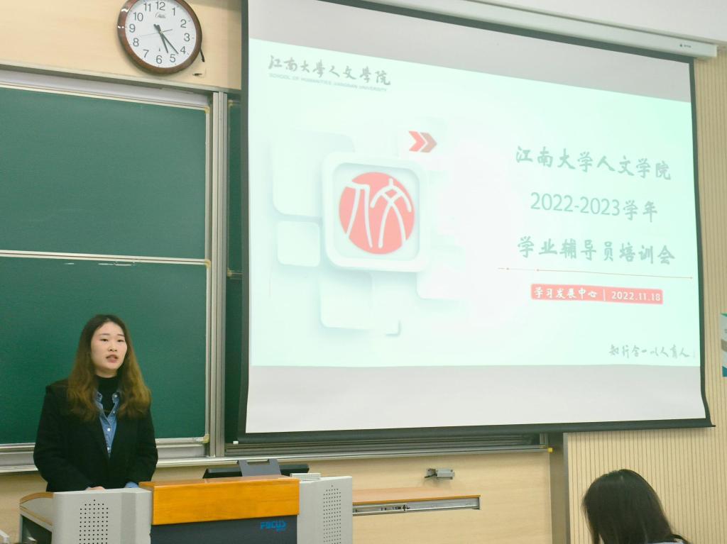 2022-2023学年学业辅导员培训会在第一教学楼C103室顺利举行。培训会上,优秀学业辅导员李陈媛、张圆缘两位同学做经验分享,皇冠国际