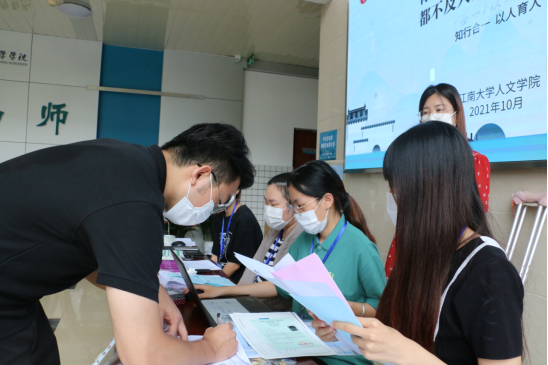 迎新场外的红色喷绘上,由有638名新生组合形成的“强国有我 不负青春”艺术字,富有特色,创意满满。青年学子把名字融入“强国有我”,也将青春“小我”融入强国“大我”,让青春在强国伟业中绽放光芒。学院为每位新生精心准备了国学大师钱穆先生所撰写经典书籍《人生十论》,期待青年学子在江南开启新生活,感悟思索人生真谛。除此之外,学院还为每位师范生新生准备了“练字小黑板”和师范生硬笔书法练习本,帮助新生提升专业技能,涵养师范情怀。报到现场,新生纷纷在“我爱皇冠国际