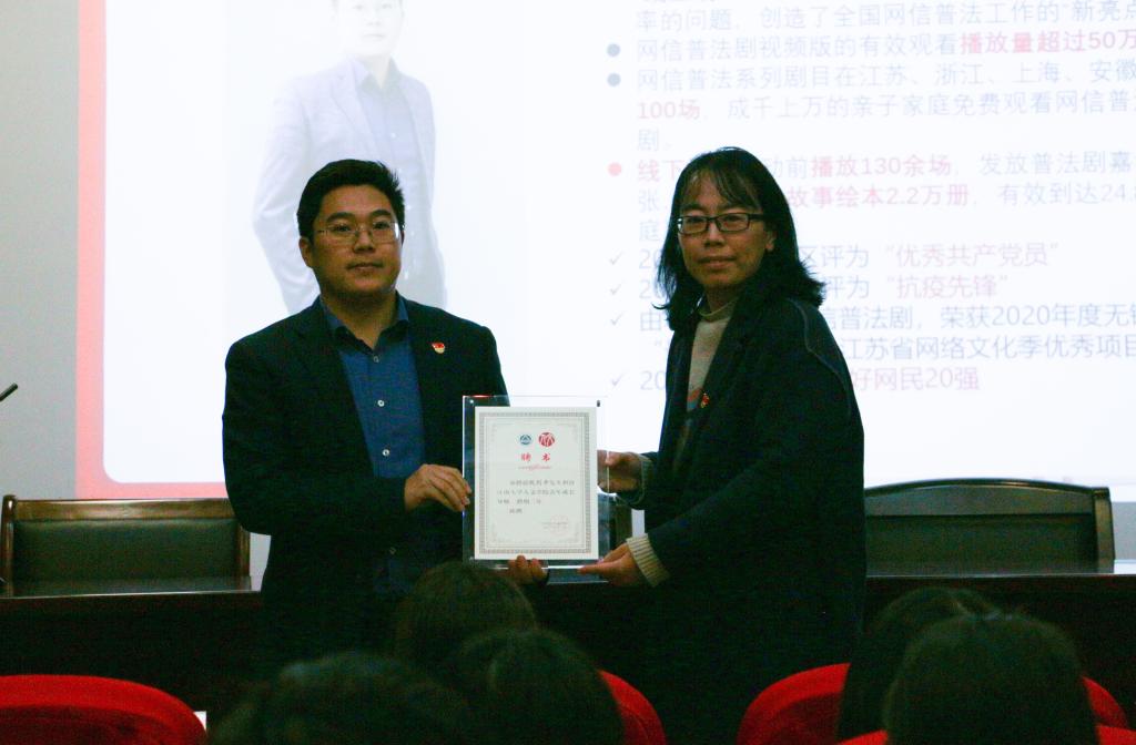 李萍为祝利升颁发“青年成长导师”聘书