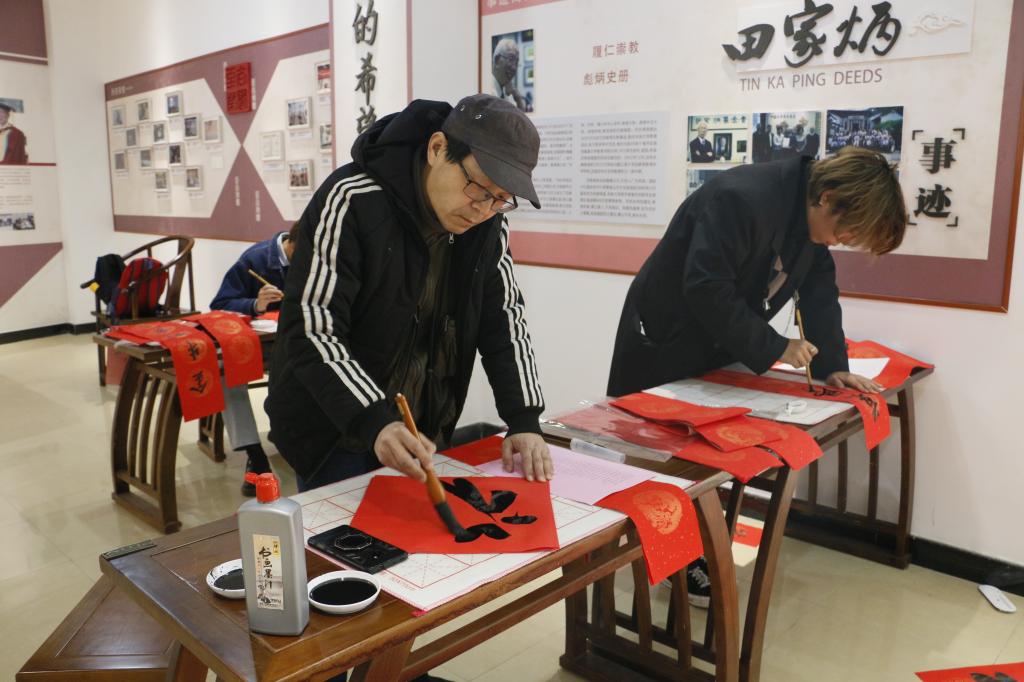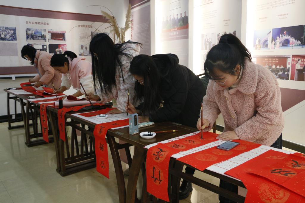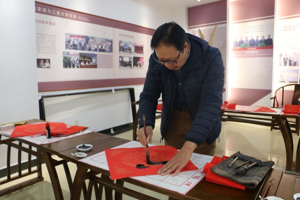 在田家炳先生事迹陈列厅举办“送春联写福字 金洒红宣迎新春”新年特别活动。无锡市书法家协会会员、无锡市私营个体经济协会理事任理培先生和校党委宣传部胡奕老师以及皇冠国际
