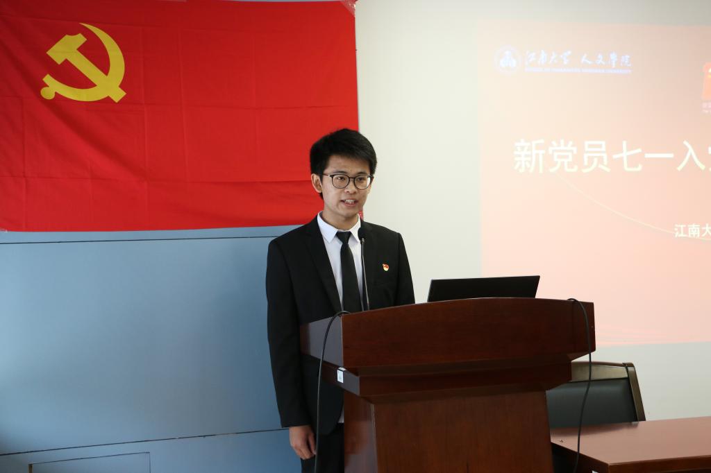 共发展了115名预备党员。随后,新党员同志进行了党徽佩戴仪式,明亮的党徽是党员身份的象征,更是责任的标志。之后,在陈明选教授领誓下进行了新党员入党宣誓、老党员重温入党誓词仪式。教育技术专业2019级学生杨智超同学作为新党员代表发言,他在发言中向党表明三点决心:坚定信仰,学好党史讲好党史;锐意进取,增长才干开拓创新;回顾过去,面向未来薪火相传。