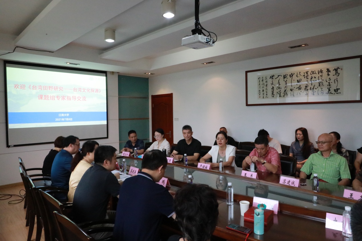 7月8日上午,由全国对台干部培训中心主任王杰教授率领的《台湾田野研究——台湾文化探源》课题组专家一行来到江南大学调研交流,无锡市台办严健媛主任,汪克强副主任,学校国际交流处周鹏处长,蔡建英副处长,以及皇冠国际