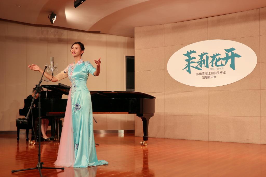 “声乐表演与教学”方向的研究生培养计划中,学生不仅需要具备一定的学术研究能力,发表有质量的学术文章,完成研究生毕业论文,还需要通过毕业晚会来展现专业技能的学习成果。本场音乐会的曲目选择,涉及不同地方的民歌、古诗词艺术歌曲、戏曲风格歌曲,以及歌剧选段和当代创作歌曲,是张倩倩在研究生阶段声乐学习的一次综合展示。