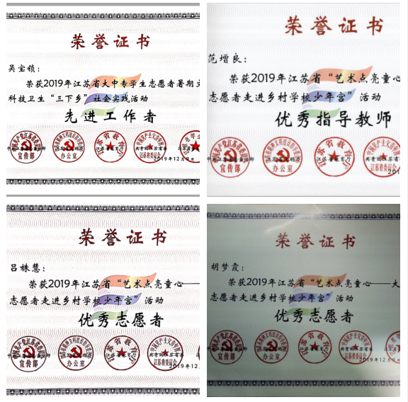 以“以知促行 以行求知”为主题,以新中国成立70周年,五四运动一百周年的时间节点为契机,充分结合当前社会热点,广泛宣传动员,并依托学院的专业优势,深入基层、走近群众,开展志愿者暑期文化科技卫生“三下乡”社会实践活动,近800名学生组成81支队伍奔赴祖国各地开展社会实践,并取得丰硕成果。学院的暑期社会实践工作获得了丰硕成果,共有2支团队荣获江苏省2019年大学生暑期社会实践活动优秀团队称号,2名同学获评江苏省2019年大学生暑期社会实践活动优秀志愿者,1名教师获评优秀工作者(江苏省),1名教师获评优秀指导老师(江苏省)。心手相牵支教团圆满完成国家推普脱贫专项实践活动任务,并获教育部语言司和共青团中央来信表扬。心手相牵支教团入选学校2019年暑期社会实践“十佳团队”。