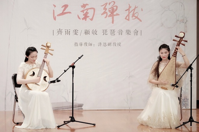 音乐系《江南弾拨》——齐雨雯、顾敏琵琶音乐会在江南大学音乐厅举行。这是她们大学四年学习成果的展示和总结。
